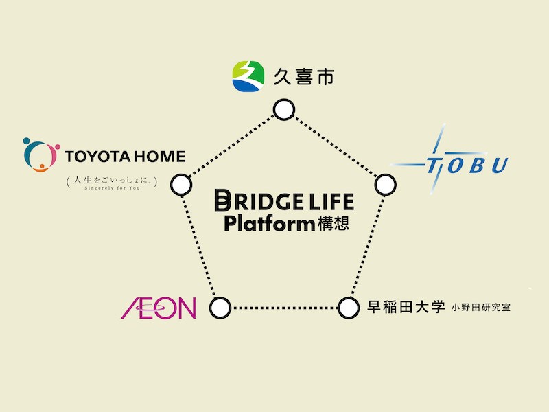 「BRIDGE LIFE Platform(ブリッジライフプラットフォーム)構想」は埼玉県久喜市、東武鉄道、トヨタホーム、イオンリテール、早稲田大学大学院 小野田弘士研究室によるプロジェクト。同日、5者による「まちづくりに係る連携・協力に関する協定書」が締結された。