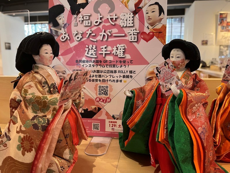 「福よせ雛展」は今年で12回目。愛知や岐阜、鳥取などの32会場に加え、東京・新橋の「とっとり・おかやま新橋館」においても実施。プロジェクト開始以来、東京での開催は初となる。