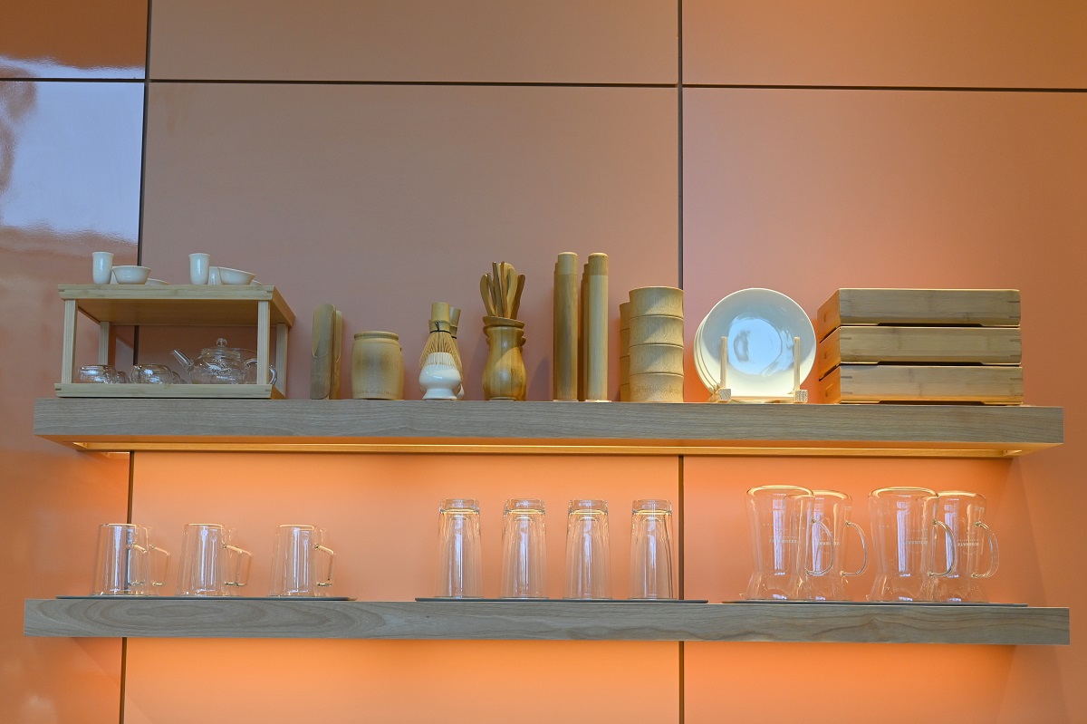 特に店内のデザインは、1号店はフラッグシップ店として総合的に、2号店は抹茶、そして3号店はブラックティーがテーマといい、壁の色合いなどにそれらしさが見られる。大阪という土地柄、誰もが親しみやすく味わうブラックティーが選ばれたとのこと。