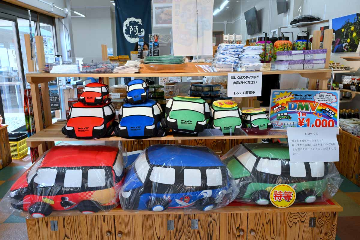 世界初のDMV本格営業運行で盛り上がる地元では、DMVにちなんだグルメやグッズなどが続々登場。始発停留所にある阿波海南文化村などで飲食、購入が可能だ。