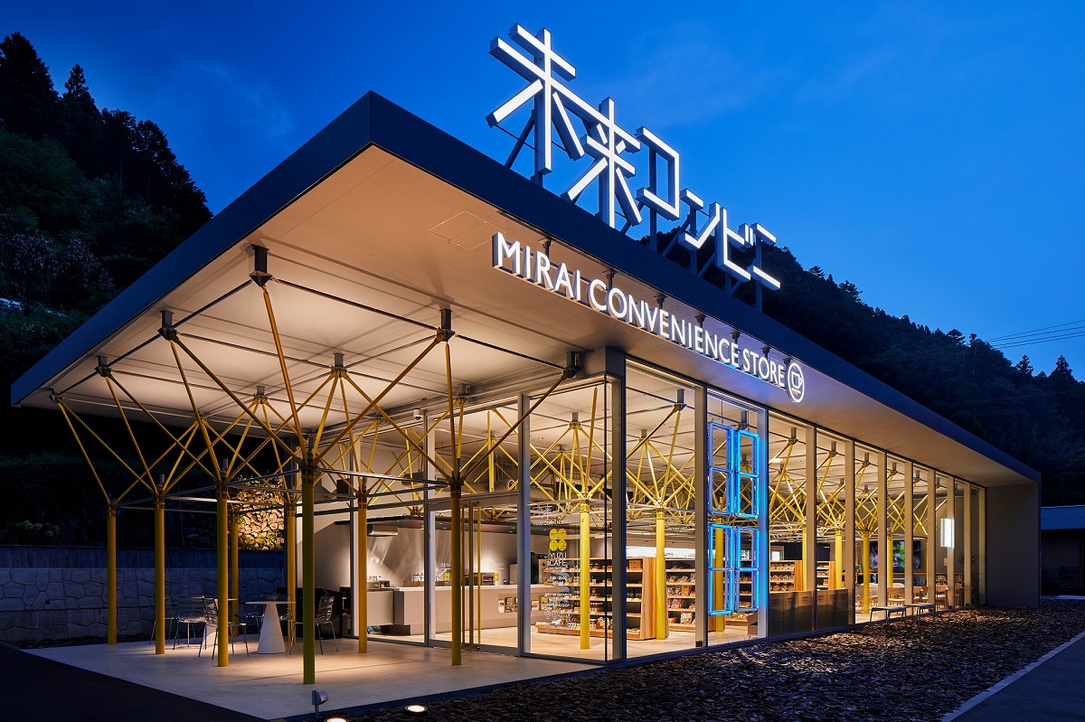 2020年4月、この地区唯一のコンビニエンスストアが新規開業した。その名も「未来コンビニ」で、木頭地区出身の実業家が手掛けた、近未来的かつスタイリッシュな店舗デザインが目を引く。国道195号線沿いに立ち、ガラス張りの店内は外からもその様子がよく見える。