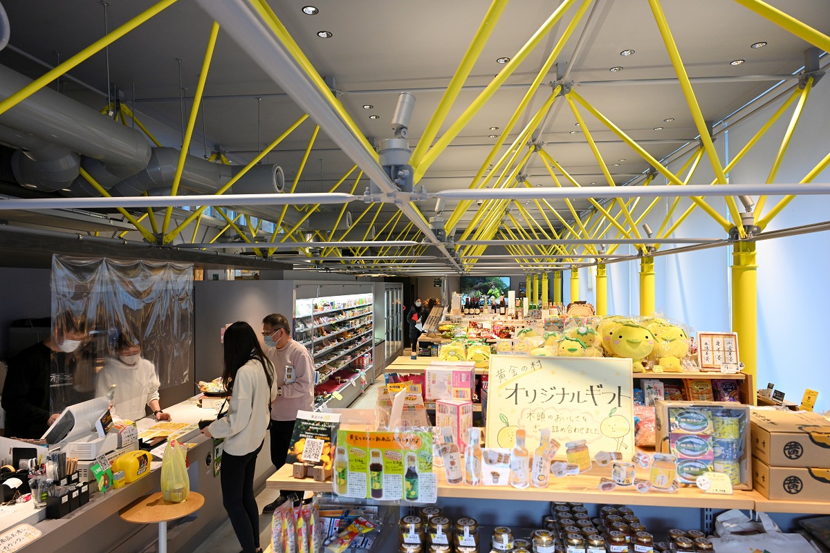 未来コンビニには、日々の食料品や日用品が並ぶほか、地元特産の「木頭ゆず」を使ったスイーツやドリンク、加工品なども販売する。店内の「YUZU CAFE」では、ゆず果汁100%の「ゆずショット一番搾り」やゆずしょうが茶、ゆず塩トッピングなどのソフトクリームも味わえる。
