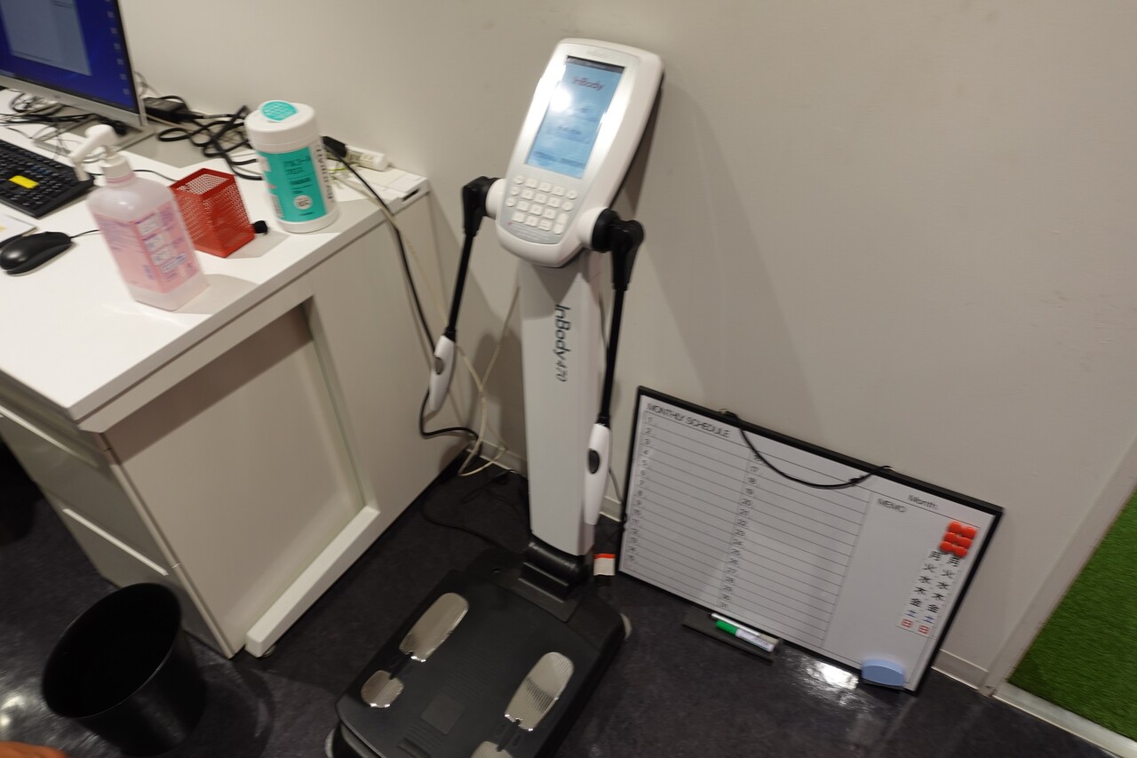 ¤Þ¤º¥Ñ¡¼¥½¥Ê¥ë¥È¥ì¡¼¥Ë¥ó¥°¤ò¹Ô¤¦¾ì¹ç¡¢InBody¤È¤¤¤¦µ¡³£¤Ç¶ÚÆùÎ̤äÂλéËÃΨ¤Ê¤É¤ò·×¬¤·¤Þ¤¹¡£¥Ð¡¼¤ò°®¤Ã¤ÆÎ©¤Ä¤À¤±¤Ç·×¬¤¬¤Ç¤¤Þ¤¹¡£