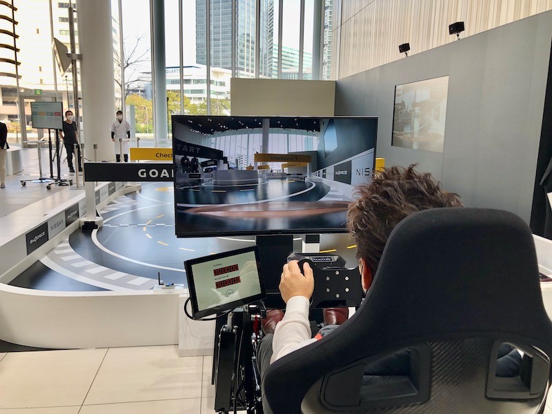 ラジコンカーに搭載されたカメラ映像をモニターで見ながら操作するため、実際に運転しているかのように「e-4ORCE」の制御を体感できる。ラジコンカーが挙動を検知すると同時にシートも連動するので、臨場感も満載だ。