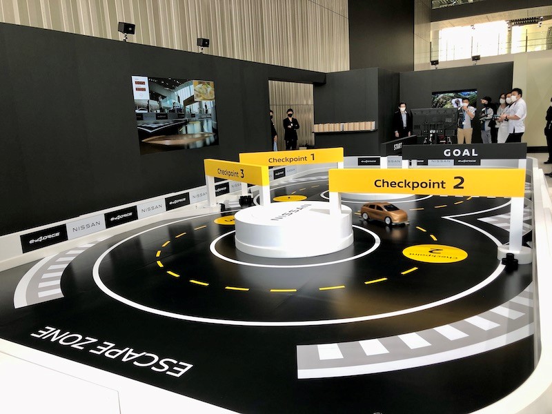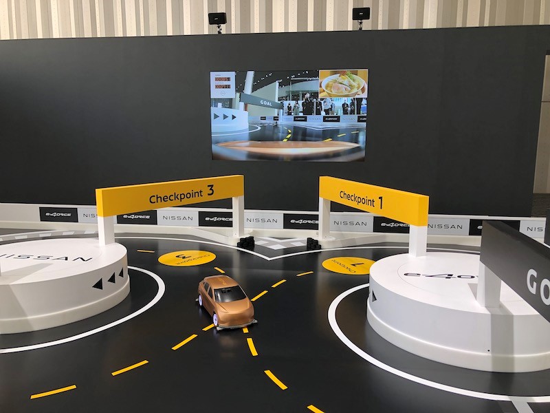 コースは「e-4ORCE」が誇る“コーナーリング中にブレない”を体感できるレイアウトに設計。1回目でe-4ORCE制御無し、2回目で制御有りのラジコン操作で挑戦することで、車体の揺動を抑える特性を直感的に楽しめる。