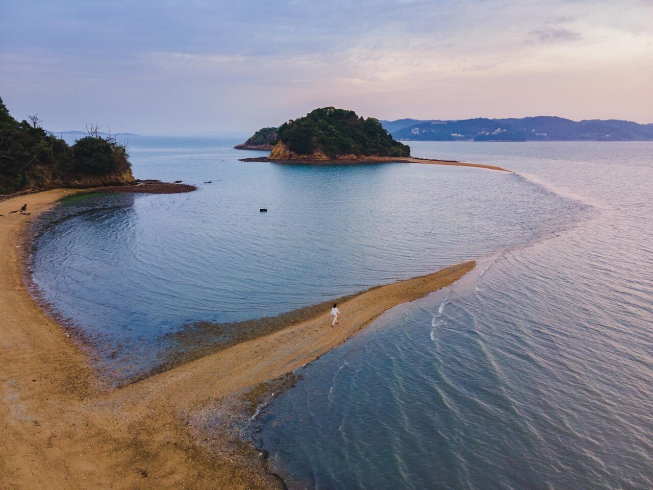 春先になると潮の満引きの加減で、海底から砂の道が現れます。パワースポットとしても人気が高い「黒島ヴィーナスロード」は、天気の良い日のお出かけにピッタリ。黒島、中ノ小島、 端ノ小島の3つの島をつなぐ長さ約800mの弓なりの砂州は歩いて渡ることができます。