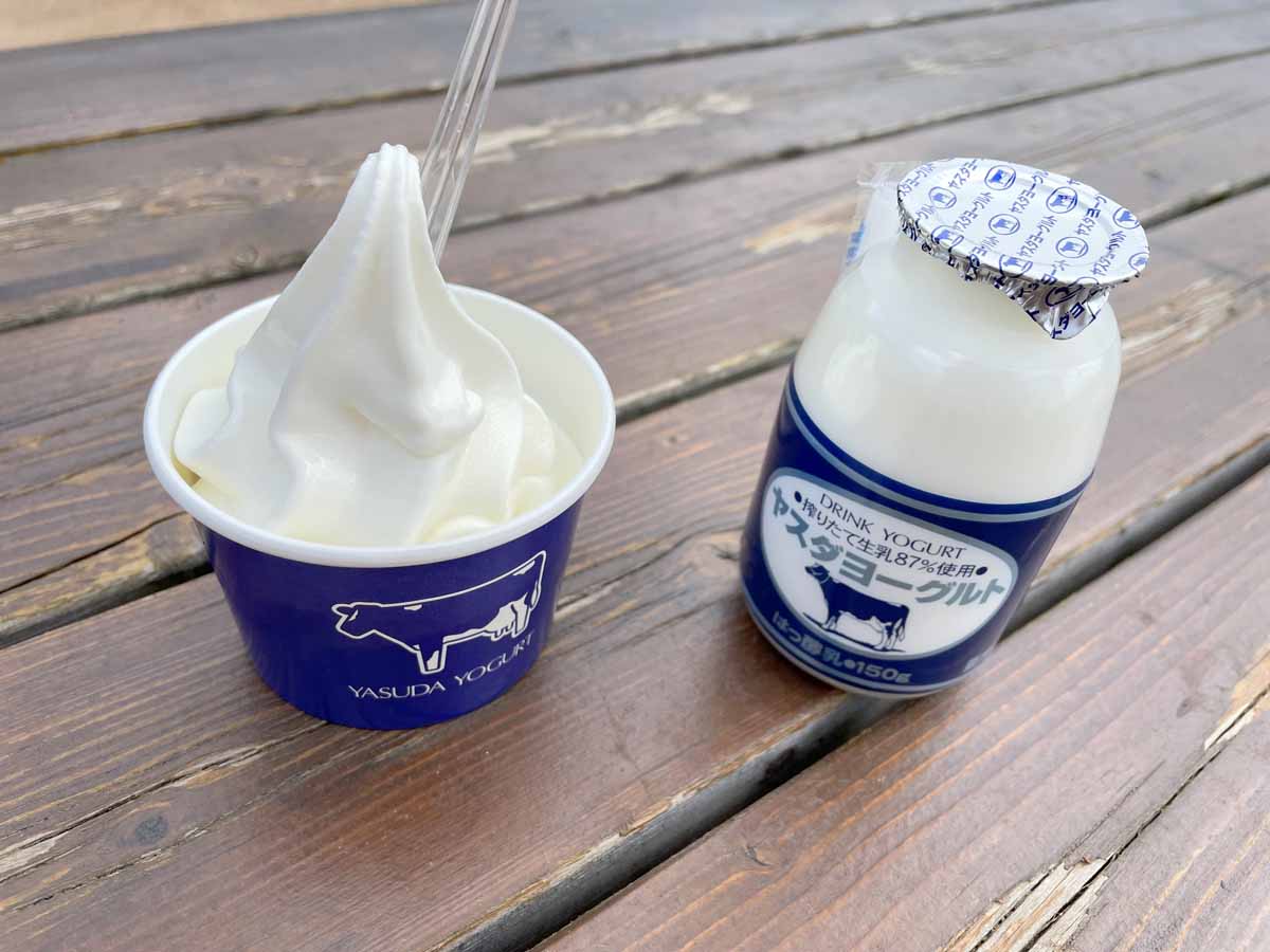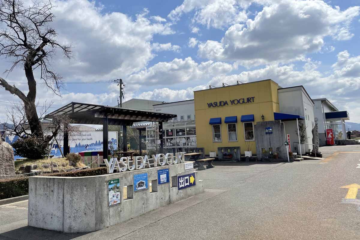 ヤスダヨーグルトの本社工場にそばに、直売所があると聞いていくと、直売所だけではなく、その辺り一帯がまるでヤスダヨーグルトのテーマパークのようになっていた!