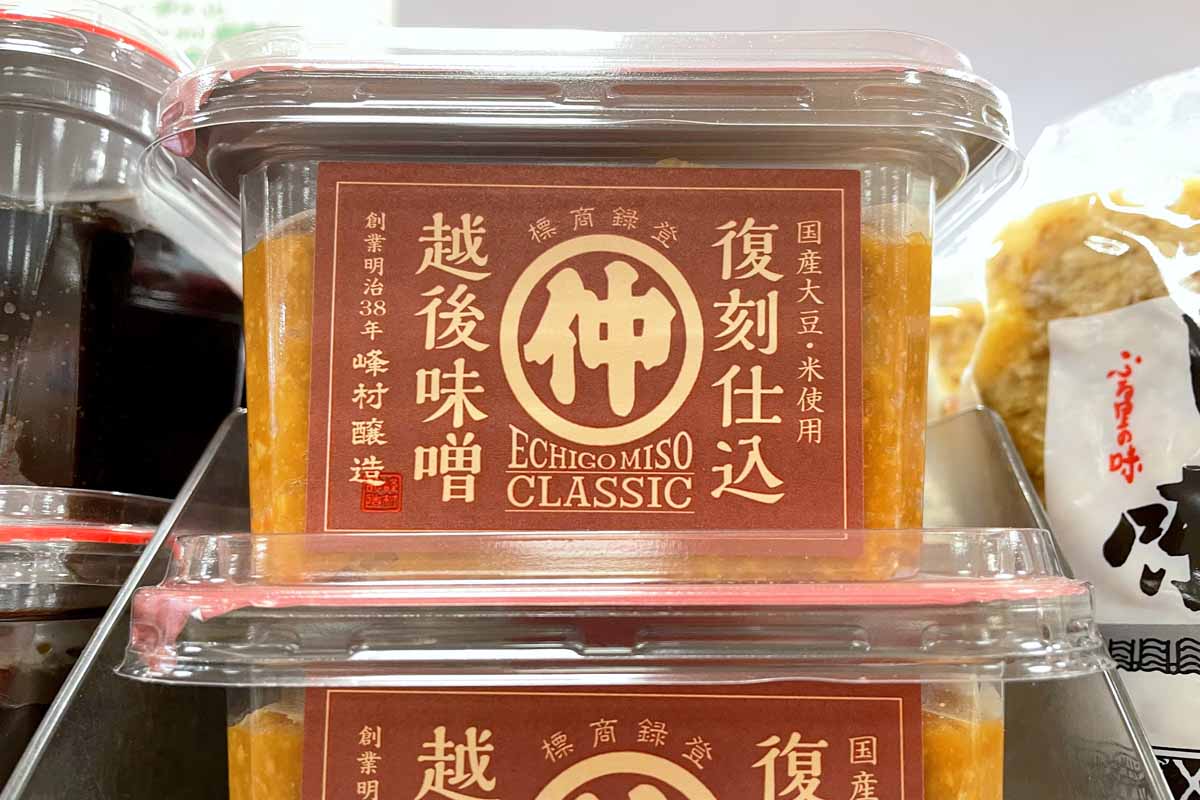 米が旨いと、味噌も美味しい。新潟の味噌は「越後味噌」と呼ばれる。明治38年創業、峰村醸造では、復刻仕込みの越後味噌をスーパーなどで販売。その他にもいくつかの醸造メーカーが味噌を販売しているので、新潟のスーパーで味噌コーナーは要チェック。