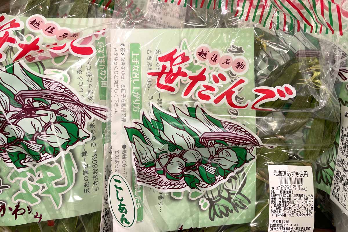 「笹だんご」も、新潟名物。土産店にもたくさん売られている。スーパーで堂々と笹だんごが陳列しているのは、新潟ならではと言える。笹だんごも、土産店よりも安い。自宅用ならこれで十分。数日日持ちするのも良い点。