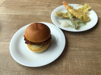 静岡の名物みしまコロッケのミニバーガーもぜひ楽しみたい。ふんわりしたバンズとカリッと揚げられたコロッケの食感の対比は見事。さらに銚子港で水揚げされたイワシの天ぷらもイチオシだ。温かい蕎麦やうどんに合わせてもいいだろう。