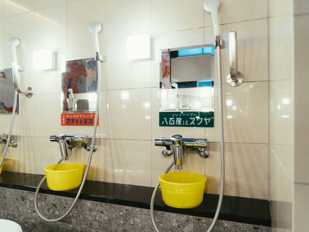 そして、銭湯ならではの方法で地域を感じるのが、鏡広告。洗い場の鏡の下には地元のお店などの広告が掲示されている。レトロ感漂う鏡広告からは堀田湯と地域のつながりを感じて、心まで洗われる気分になれそうだ。