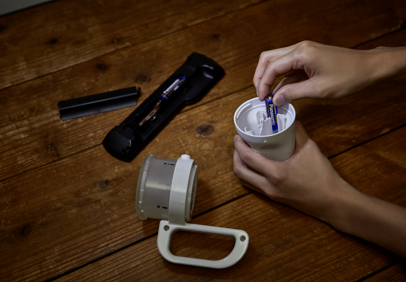 同社で一般家庭での乾電池の保有状況を調査したところ、単3形と単4形の保有数が多かったことから、従来の単1形〜単3形仕様から単4形も使える構造にモデルチェンジ。さらに使いかけの電池も液漏れなどのトラブルなく使えるよう、全ての電池を1本ずつ収納できる仕様となった。