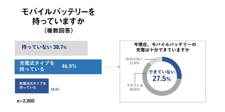 停電経験者が停電発生直後、最初にとった行動は「スマホで情報収集」が27.1%とトップ。スマホは情報収集に重宝する一方、「スマホをライト替わりなどに使っていたため電池切れに(30代女性)」、「心配するメールが次々に届き、どんどん充電が減っていった(50代女性)」など、バッテリー残量に不安が募ったエピソードが寄せられた。