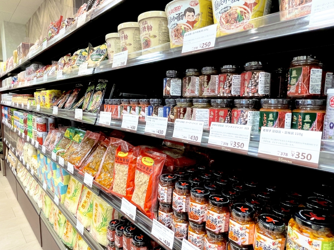 À¾Éð¿·½ÉÀþ¡¦ËÜÀî±Û±ØÅÌÊâ2ʬ¡£55Kitchen¤Ï¡¢¾¦Å¹³¹¤ËŹÊÞ¤ò¹½¤¨¤Æ¤¤¤Þ¤¹¡£Å¹Æâ¤ËÆþ¤ë¤È¡¢¤¿¤¯¤µ¤ó¤Î¿©Éʤ¬Å¹Ãæ¤Ë¤º¤é¡¼¤Ã¤Èʤó¤Ç¤¤¤Þ¤·¤¿¡£¥¢¥¤¥Æ¥à¤¬¤¿¤Ã¤×¤êÄÄÎ󤵤줿ŹÆâ¤Ï¡¢¤Þ¤ë¤Ç³¤³°¤Î¥¹¡¼¥Ñ¡¼¤ò×Ç×ʤµ¤»¤ë¤Î¤Ç¡¢¤³¤ì¤À¤±¤Ç¤â³¤³°Î¹¹Ô¤Ëˬ¤ì¤¿¤è¤¦¤ÊÈóÆü¾ï´¶¤¬Ì£¤ï¤¨¤ë¤Ï¤º¤Ç¤¹¡£