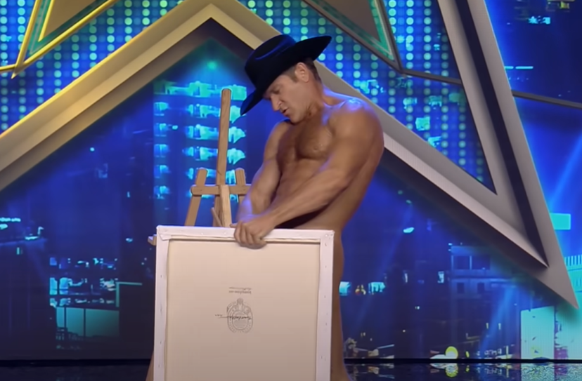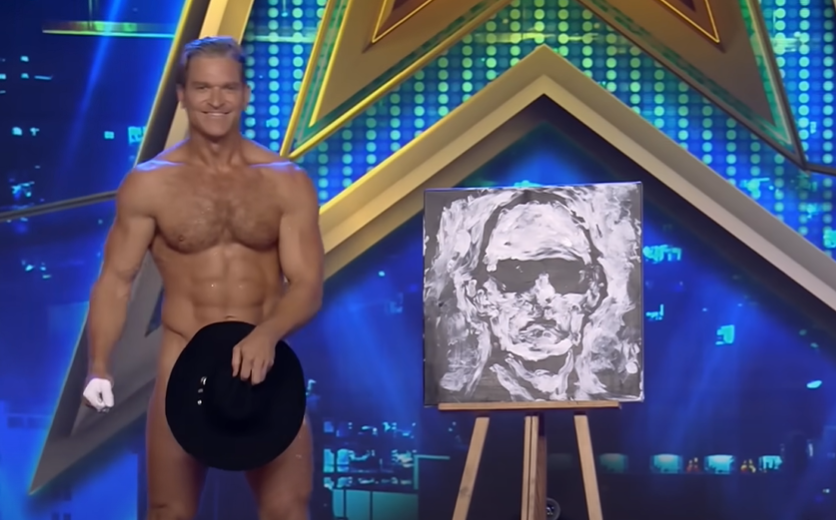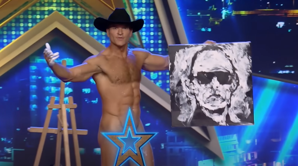 カナダ出身の Brent Ray Fraser さん(43歳)は、自分の性器に塗料を付け絵を描くおじさん。過去にマリリンモンローやオバマ大統領など、数多くの有名人を描いてきた世界的な画家である。具体的には、大きな絵を描く時はモノが柔らかい方が適しており、スタンプを押すようにモノを使うときは固くさせるという。これまで世界中の番組でパフォーマンスを披露してきた彼が、スペインの大人気オーディション番組「Got Talent Espana」に登場。突然現れたイケメンマッチョが服を脱ぎ始めると、会場からは歓声と悲鳴が湧き上がる。多くの女性が彼の股間に熱い視線を送る中、スペインの大物審査員の肖像画を描き上げてしまった。