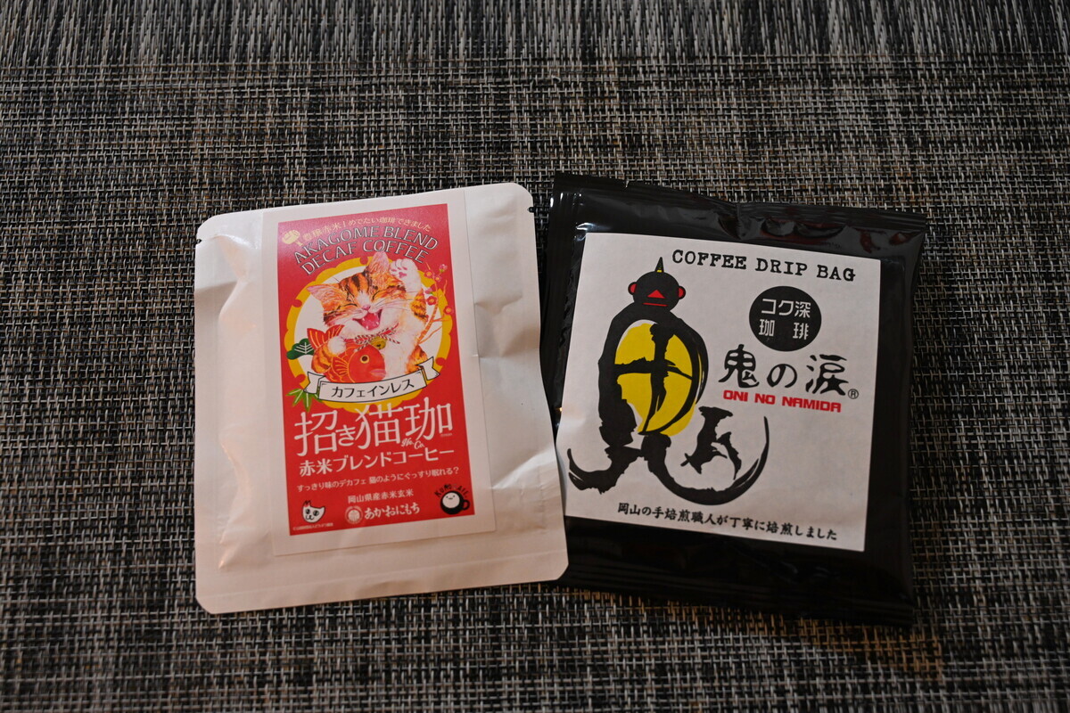 これもご当地コーヒーである。「鬼の涙」は、岡山手焙煎職人による、岡山の伝説にちなんだオリジナルブレンドコーヒーで、コクと香り、すっきり後味の深煎り。