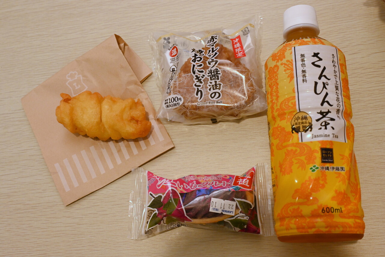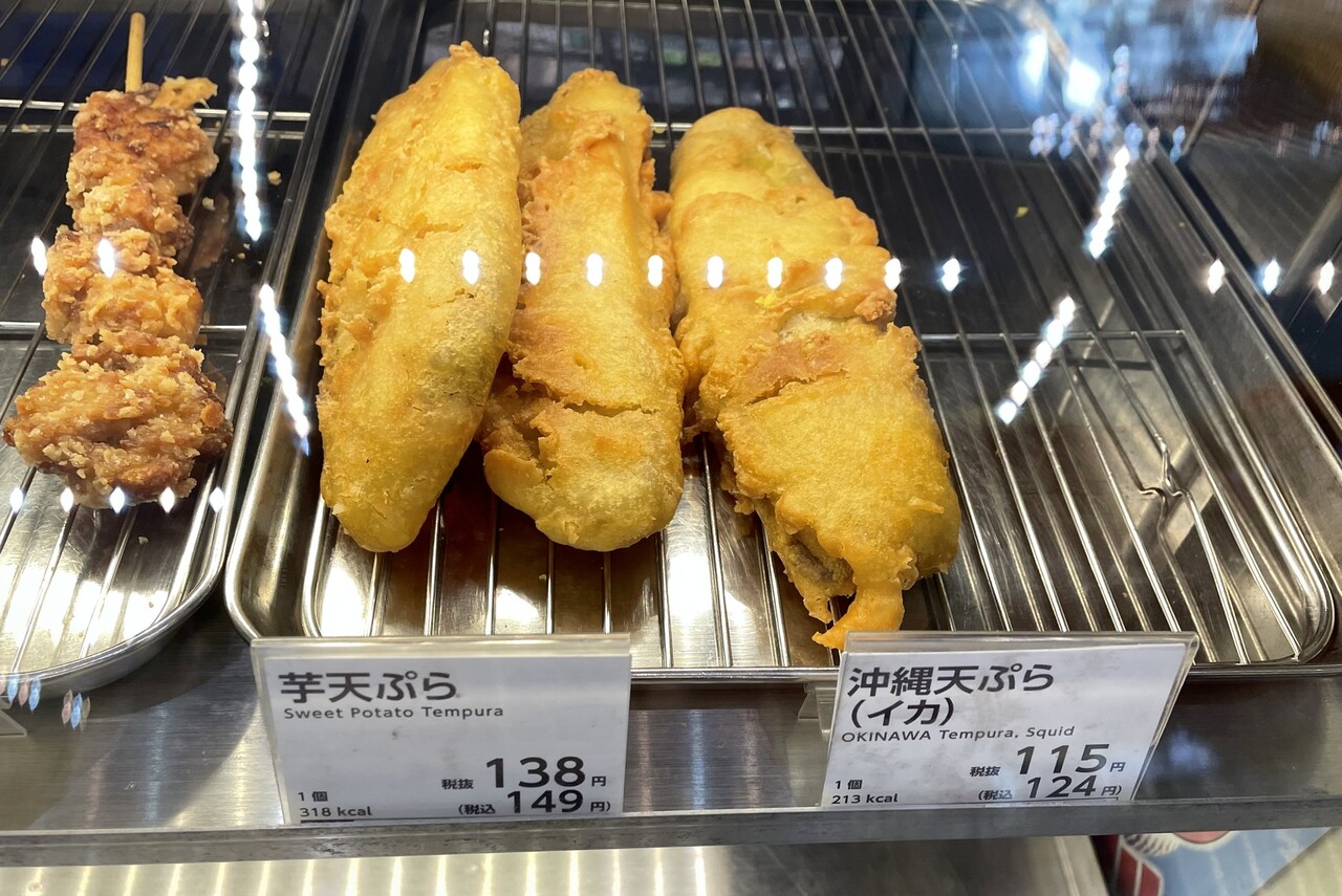 レジ横の惣菜コーナーにも注目。沖縄ではごはんだけでなくおやつで「天ぷら」をよく食べる。ローソンで見つけたのは「沖縄天ぷら(イカ)」で、味はごく普通。全国のコンビニでも欲しい一品。