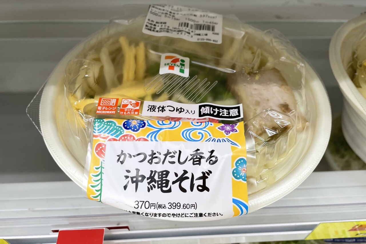 麵コーナーに行くと「沖縄そば」がある。電子レンジで温めるだけで、手軽に食べられる。値段も財布にやさしい。