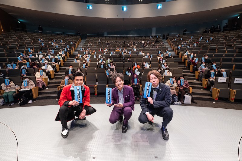 アフタートークでは、ぺこぱの師匠として知られるピン芸人のTAIGAさんが登場。EV漫才の制作秘話などが明かされた。「ステージの床が鉄製なので、ダイブした時は正直すごく怖かった」と松陰寺さん。シュウペイさんは「ネタの練習は何回もしたけど、お客さんに披露するのは初めてなのでとても緊張した」と安堵の笑みを浮かべた。