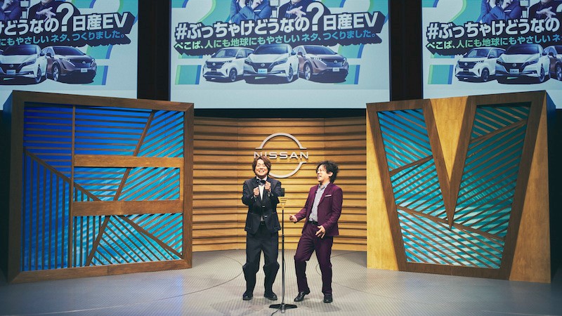 日産自動車は、電気自動車(以下、EV)の理解促進を目指したオンライン番組「#ぶっちゃけどうなの?」の公開収録ライブを2月10日に実施。お笑いコンビのぺこぱが日産EVをテーマにした「人にも地球にもやさしい漫才」を日産ホールで披露し、現在、日産公式YouTubeでその模様が公開中だ。