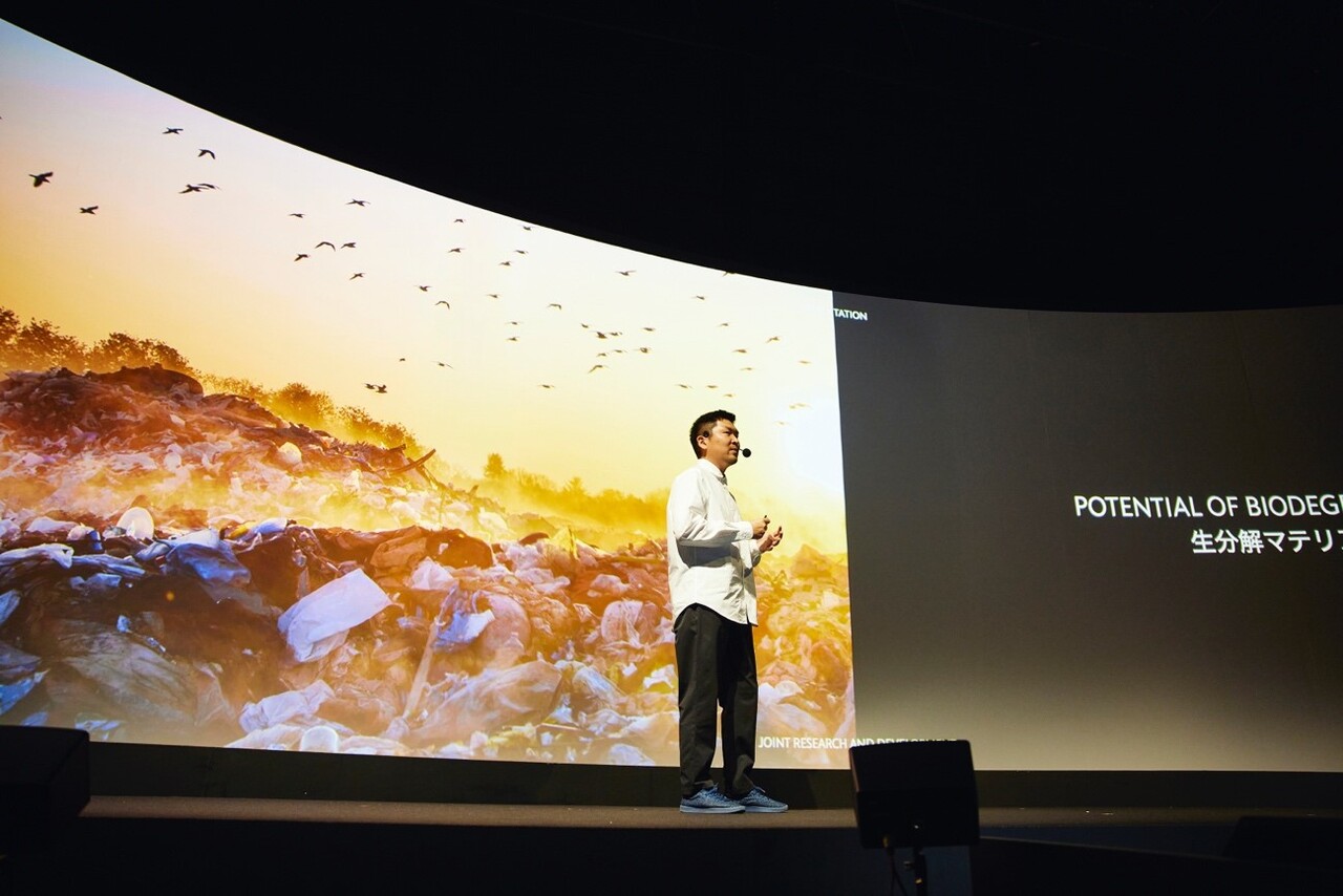 Spiber取締役兼代表執行役の関山和秀氏による、「Brewed Protein™️繊維」のプレゼンテーションも実施。コンピューターサイエンスに基づいたバイオテクノロジーが産業発展に果たす役割が述べられた。
