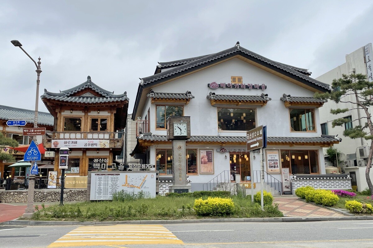 その入り口に、韓屋のおしゃれな建物が並ぶ。ここは実は「栗スイーツ」の聖地とも言える場所。公山城を訪れるついでに立ち寄るのに便利だ。