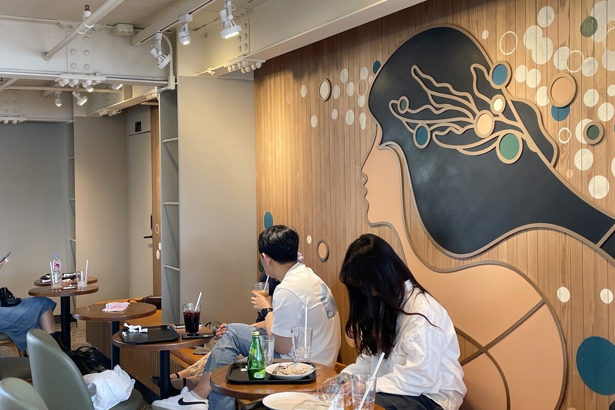 利用客は圧倒的に若者が多め。中には、BTSファンらしき日本人女性の姿も。