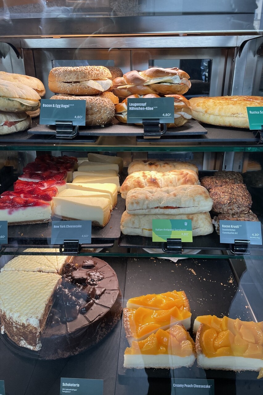 ドイツのスターバックスで販売されているフード。日本の店舗と比べると、はっきり言って、並べ方は「雑」であり、味や見た目にもこだわりなどが見られない。ただ、種類は多め。