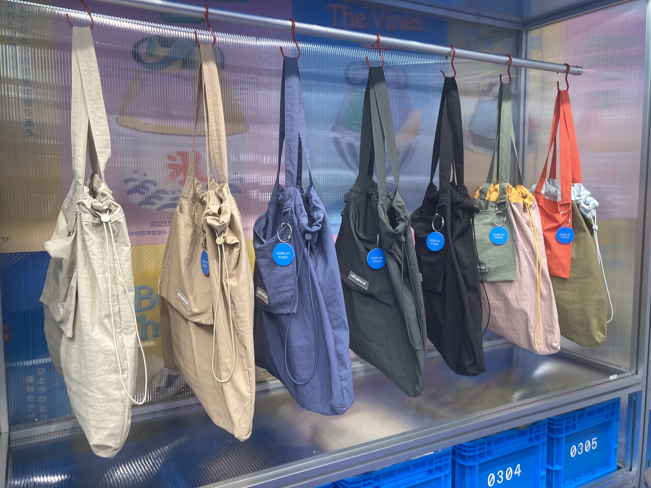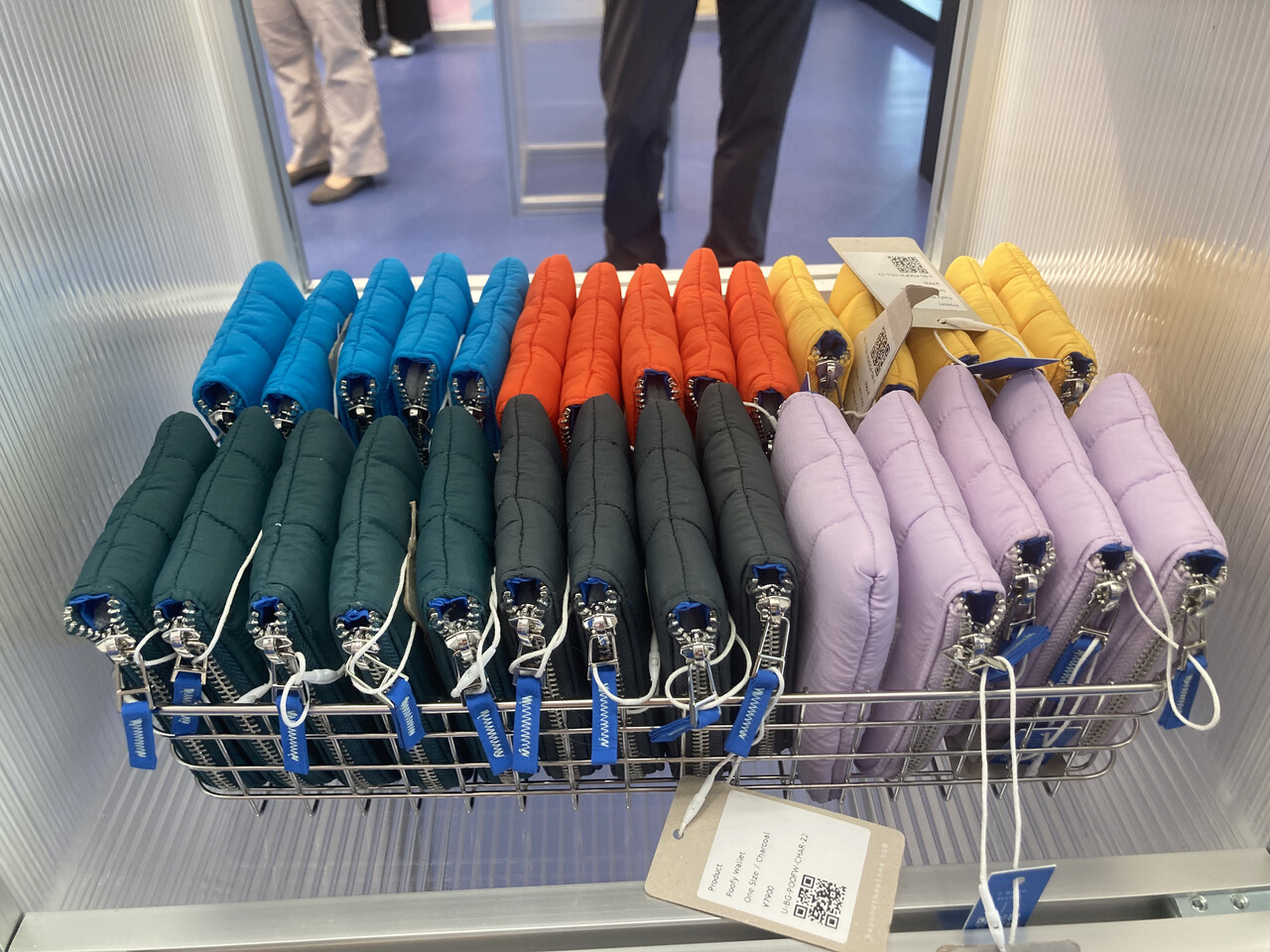 左手のペールトーンカラーブロック5色は特別版として発売されている新商品で、一度きりの販売となるため、今回のイベントでの注目商品となっています。また、他にも日本限定で生産されたコバルトブルーカラーのダンプリングバッグや、2023年限定カラーのバッグもいくつか発売されています。