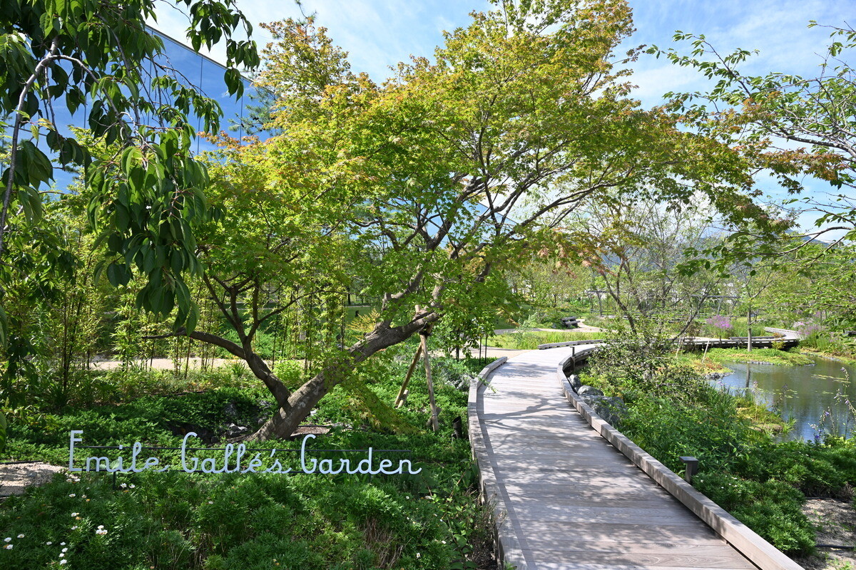 外では、ガレの作品に登場する草花を中心に植栽された「エミール・ガレの庭」での散策も楽しめます。