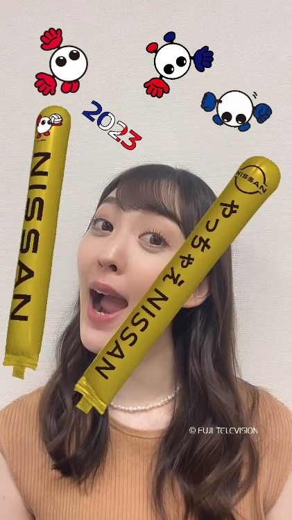 Instagram・TikTokでも、バーチャルバルーンのARエフェクトを公開!口の動きに合わせて、バルーンの「パンッ!」と叩く音が鳴ると共に、本大会の特別カラーに身を包んだバボちゃんが背面から飛び出します。会場に来られない方も一緒に応援の輪を広げてみては?