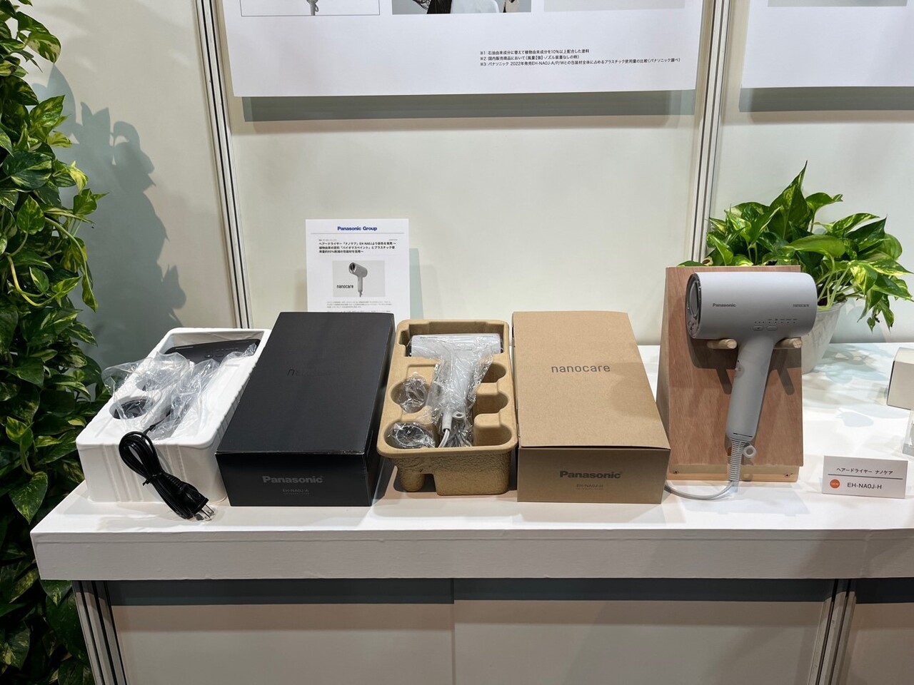 2023年9月1日に発売された「ヘアドライヤー ナノケア EH-NA0J」は、植物由来の塗料「バイオマスペイント」を採用。従来よりも石油由来成分の削減に成功した。さらにパッケージの緩衝材をプラスチック成形品からパルプ成形品へ切り替え、プラスチック使用量を約95%減らした※。