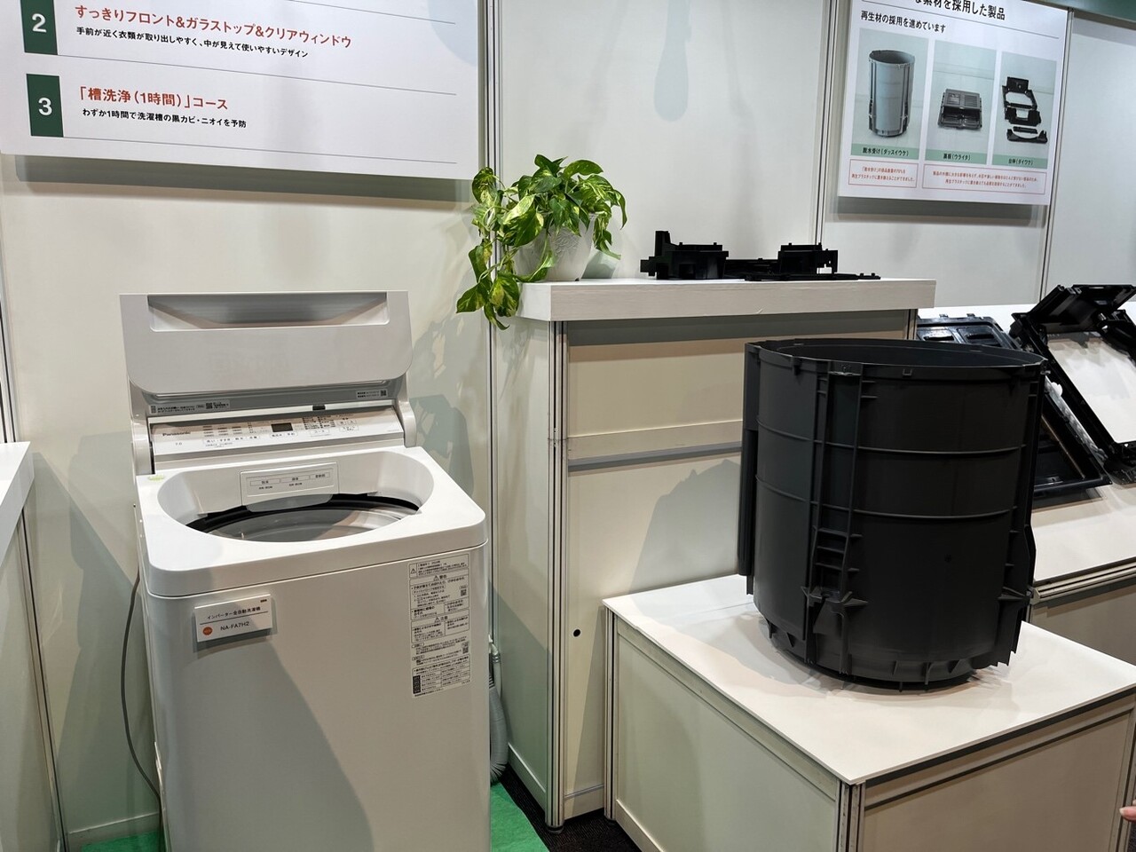 2023年6月に発売されたインバーター全自動洗濯機「NA-FA7H2」は再生プラスチック使用率を約40%にまで高めた。また2023年10月に発売予定のドラム式洗濯乾燥機「NA-LX129Cシリーズ」では、「はっ水回復」コースの搭載により、衣類のロングライフ化の貢献を目指す。