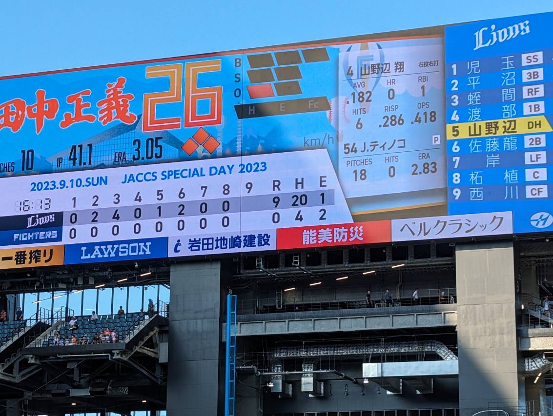試合は0-10で負けたが、それを忘れるくらい素敵な体験ができた日帰りエスコン観戦だった。