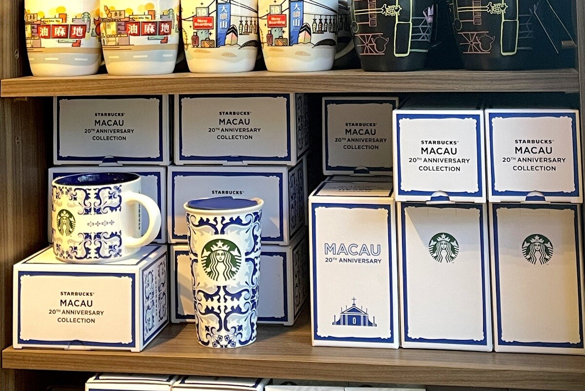 香港限定のマグカップなどは健在。さらに、隣りのマカオ限定のマグカップなどが、香港のスターバックスで売られている店舗があった。