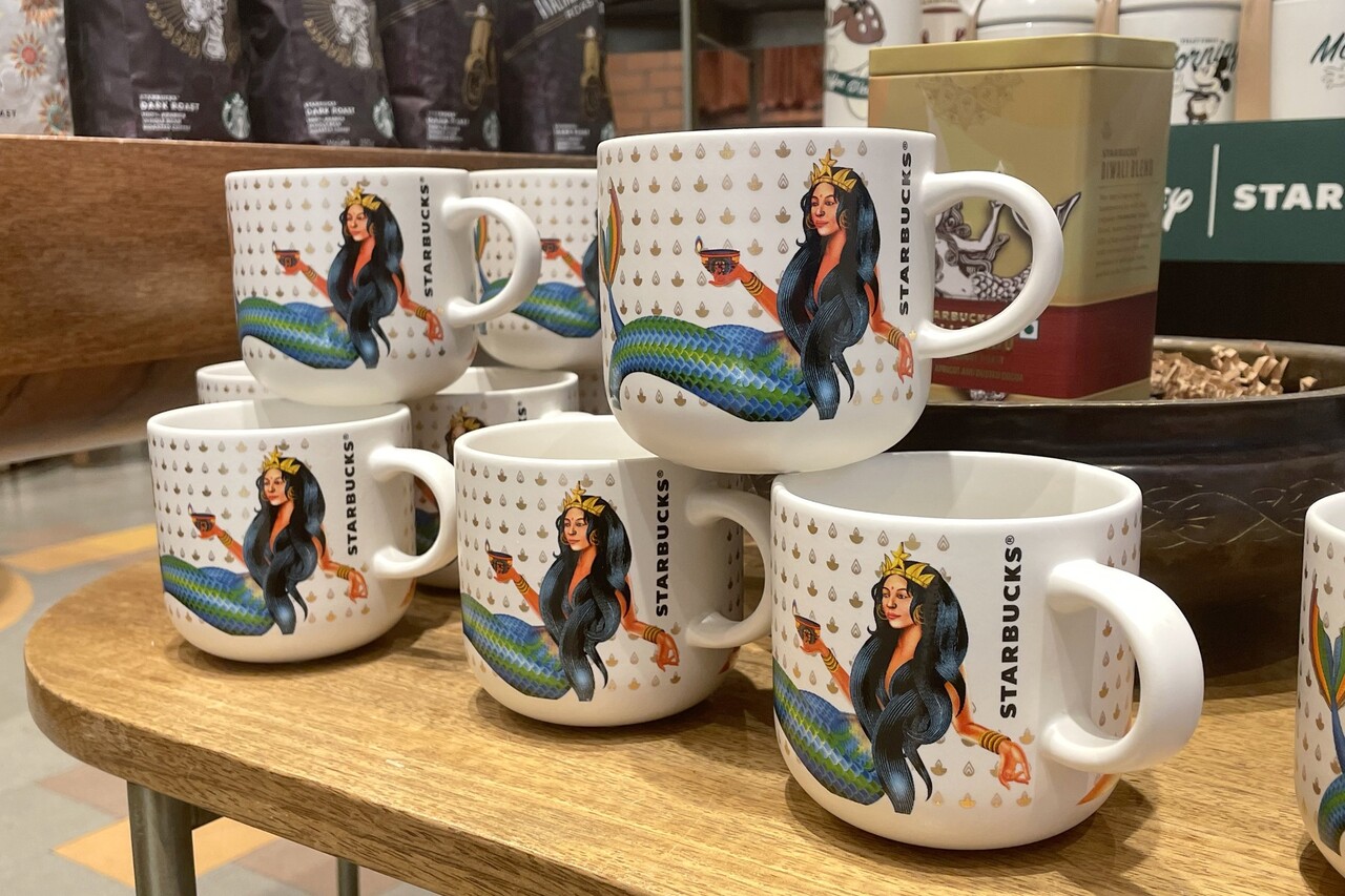 スターバックスの「サイレン」もインド仕様。マグカップやスターバックスカードなどでこのデザインを見かけた。