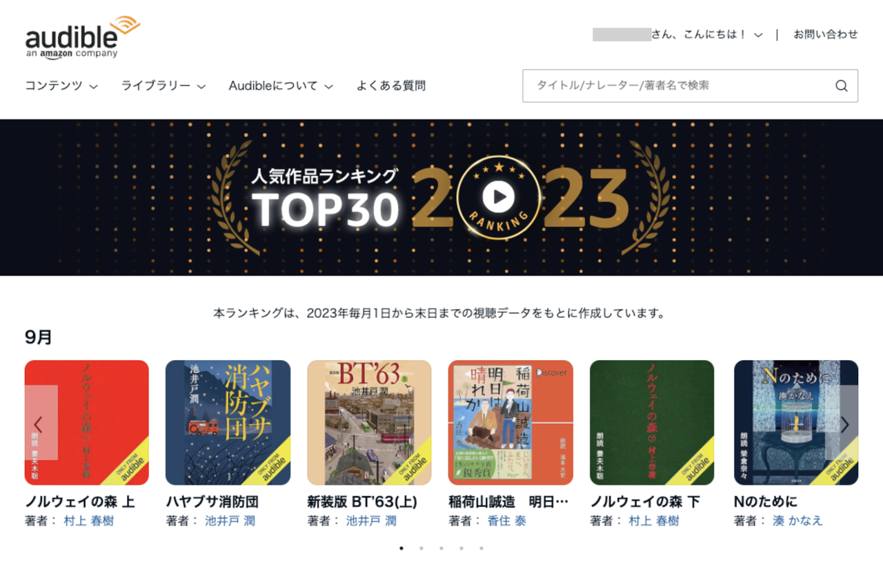 Audibleでは、月間ランキングを通じて人気の作品を紹介したり、作者ごとのページを設けて、特定の作家のファンがAudibleの作品をより簡単に見つけられたりできるようになっています。さらに、好きな声優を見つけて、その声優が朗読する本を発見することも、新たな本を見つける素晴らしい方法です。紅葉が美しい秋の季節やレジャーの楽しみが広がるこのシーズンに、ぜひAudibleを楽しんでみてはいかがでしょうか。