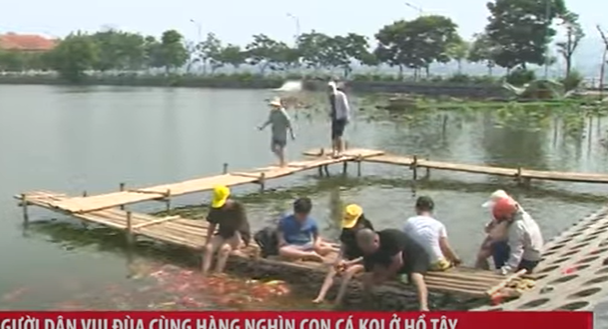 2023年、ベトナムのハノイ市タイホー地区にあるタイ湖の蓮池に、12000匹以上(重さ約8トン)のコイが放流された。大量のコイを相手に至近距離でエサやり体験ができる、首都ハノイの注目スポットとして賑わっている。もともと約3.5ヘクタールの蓮池は、夏にハスが綺麗なピンク色の花を咲かせる鑑賞池だった。しかし花が咲くのは1年でたった3か月だけで、時期が過ぎると見栄えも悪く閑散としていた。今年の春に地元の民間企業が大量のコイを放流したことで、多くの観光客が集まるハノイ最大のコイ池へと生まれ変わった。池には色とりどり約10000匹のコイが泳いでおり、桟橋から足を降ろしながら直接的なコイとの戯れが人気を呼んでいる。