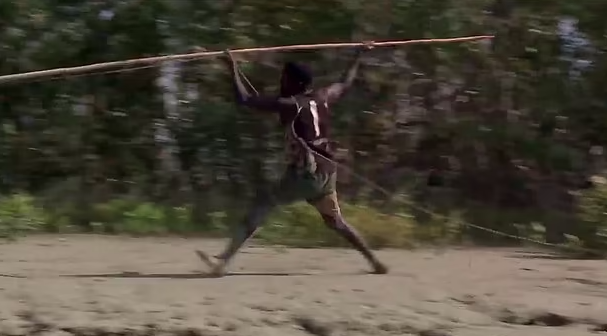 オーストラリア北部ノーザンテリトリーのアボリジニたちは、折りたたみ式の魚槍を投げてワニを狩っていた。最近ではオーストラリアのネイチャードキュメンタリー番組「Black As Boys」が、アーネムランドで狩猟を行うヨルング族のワニ狩りに密着した。川をボートで移動しながらワニを探し、泥の干潟で休んでいるワニを発見。ハンターがボートから飛び降りてダッシュでワニを追いかけ、木製の長い槍を投げつけてワニ狩りを行う。オーストラリア北部に棲息するオーストラリアワニは、まるで馬のように地面を蹴ってジャンプするように走る。小型で逃げ足がものすごく速いため、ボートで接近すると慌てて水中に身を隠してしまう。なんとか木の下に隠れているワニを捕らえることに成功、持ち帰ったワニは豪快に焼き上げて食べる。