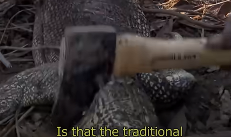 頭から切り刻まれるワニ