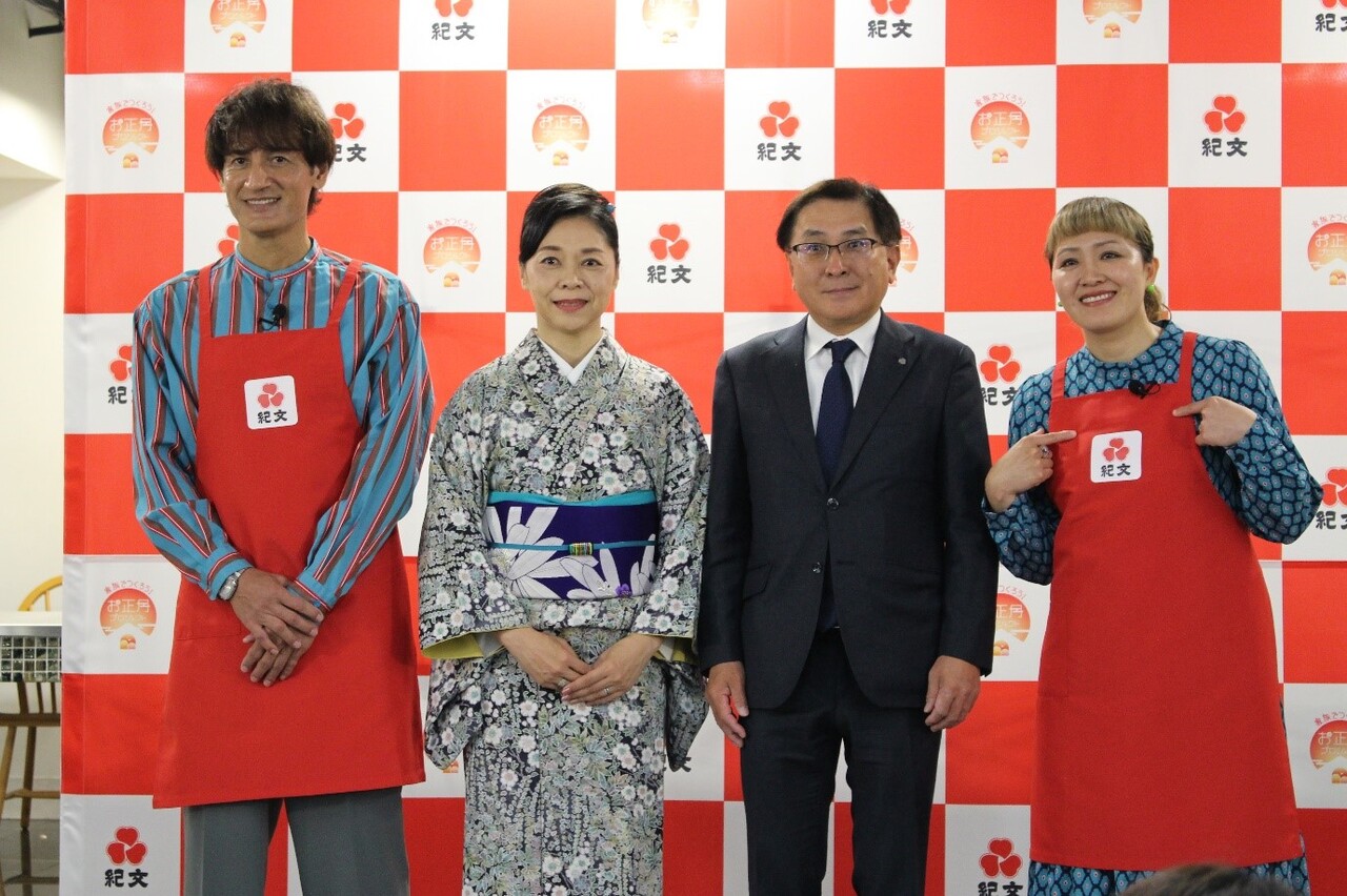 紀文は12月7日、東京・丸の内のABCクッキングにて「家族でつくろう!お正月プロジェクト」キックオフイベントを開催した。ゲストに和文化研究家で「行事育」提唱者の三浦康子さんや、元日本代表サッカー選手の本並健治・丸山桂里奈夫妻が登場し、お正月にまつわるトークセッションや家族で簡単にできるおせち作りの実演などを行った。
