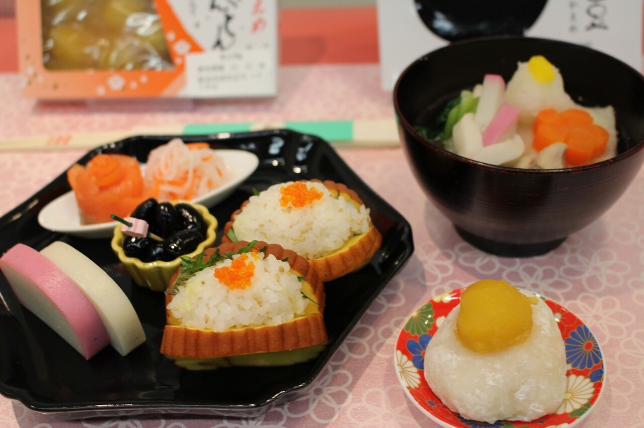 実演では、日頃から冷蔵庫に常にストックするほど大好きだという紀文のかまぼこを「むすびかまぼこ」にして、関東風みぞれ雑煮に盛り付けた。かまぼこは「日の出」を象徴するもので、紅はめでたさと喜び、白は神聖を表している。