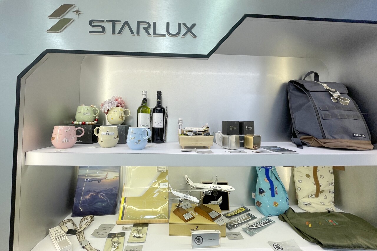 スターラックスの機内で販売されている商品も展示されている。一部の商品は、実際にその場で購入もできる。