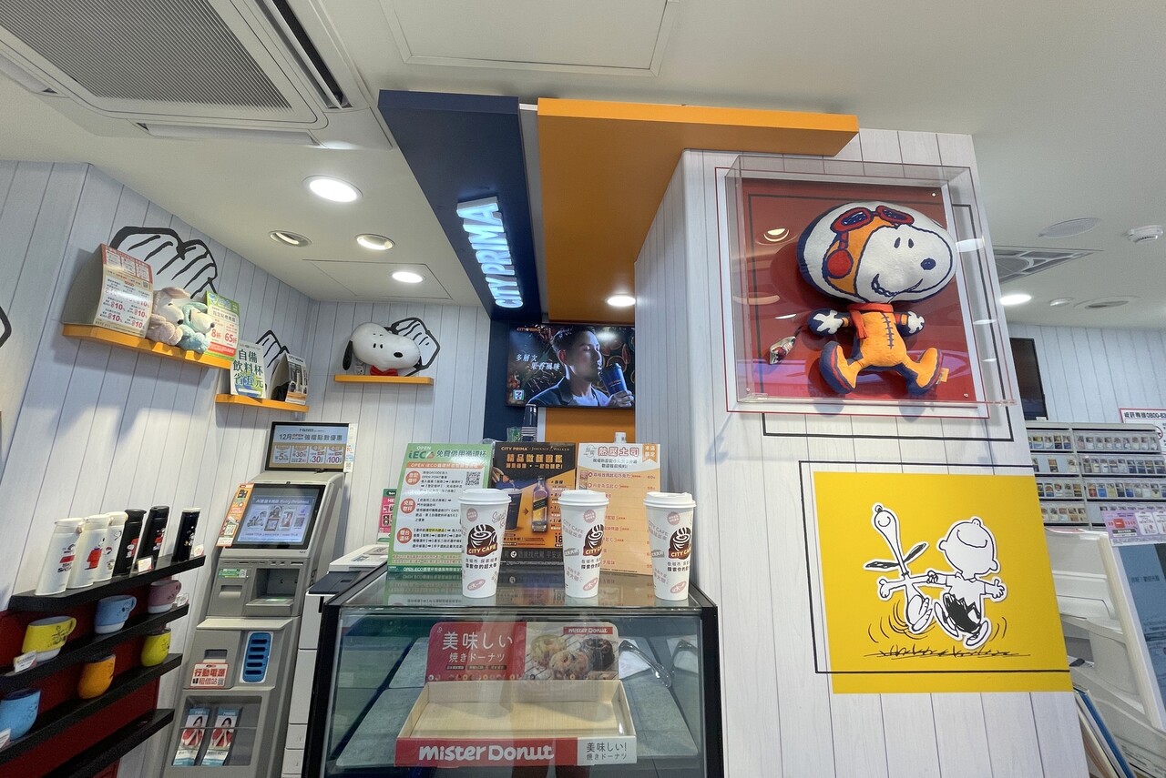 コンビニの定番商品はもちろん、スヌーピーのグッズも、店内で売られている。