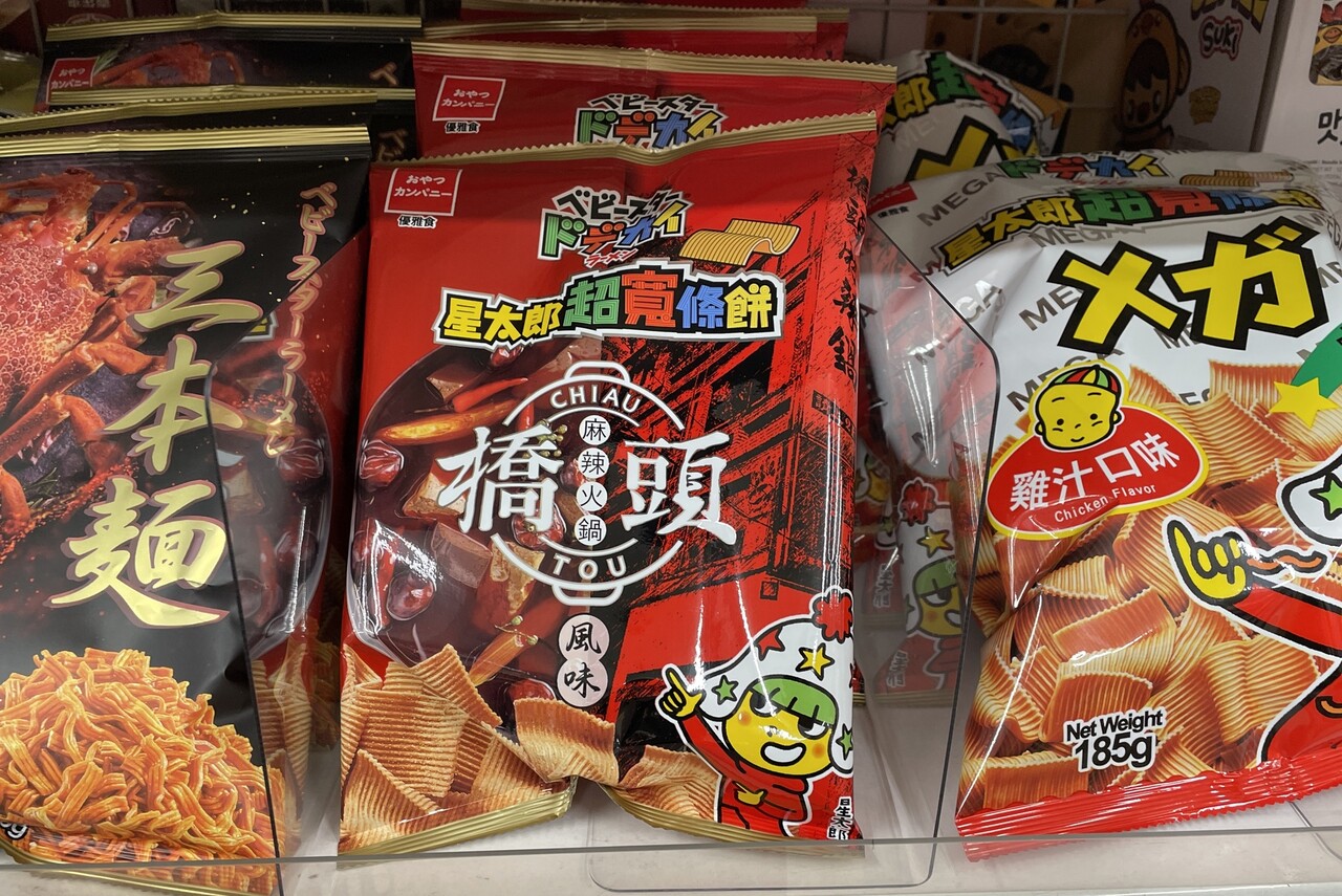 カルビー各種やベビースターなどもあり、例えば、ベビースターの「麻辣火鍋風味」などは、お土産に持ち帰るとネタになるかもしれない。