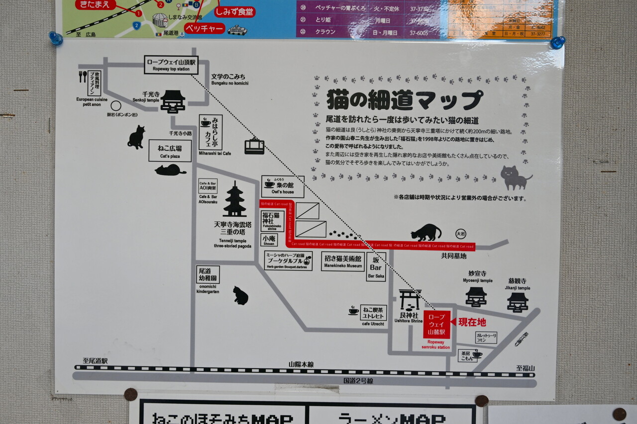 ロープウェイ乗り場から千光寺がある山に向かってやや登る途中に、猫の細道の入口がある。