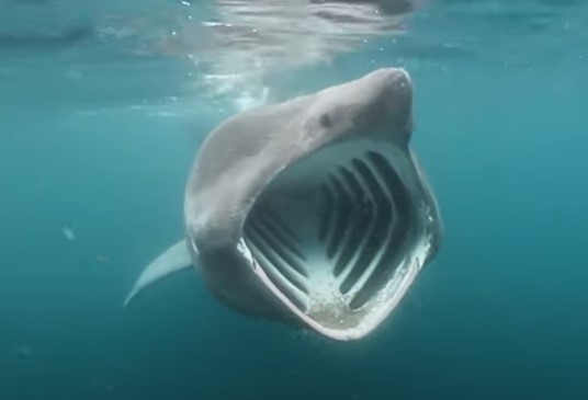 巨大な口が特徴的な世界で2番目に大きな魚類「ウバザメ」。体長は最大12メートル、体重は最大6トンまで成長する。水面近くを巨大な口を開けて泳ぎながら、1時間に2000トンの海水をエラで濾過して動物プランクトンを食べる。よく背ビレを露出させて水面で「日光浴」する習性から、「Basking Shark」(ウバザメ)という名前が付けられた。世界中の海を回遊しながら行き来を繰り返すサメで、最近では英国の沿岸などで目撃情報が上がるが、実は今最もウバザメ熱が高まっているのがアイルランドなのである。