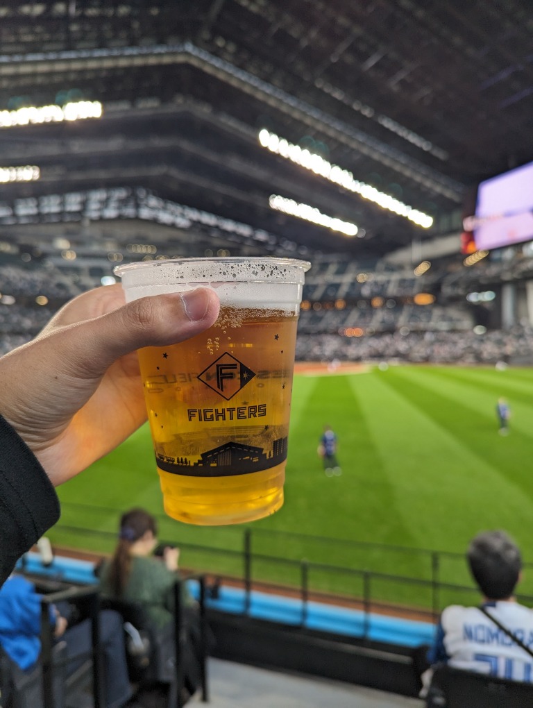 天然芝の管理のためか、球場内は若干涼しめ。この時期は1枚羽織るものがあっても良いかもしれない。そのためビールの進みも少し遅めだった。
