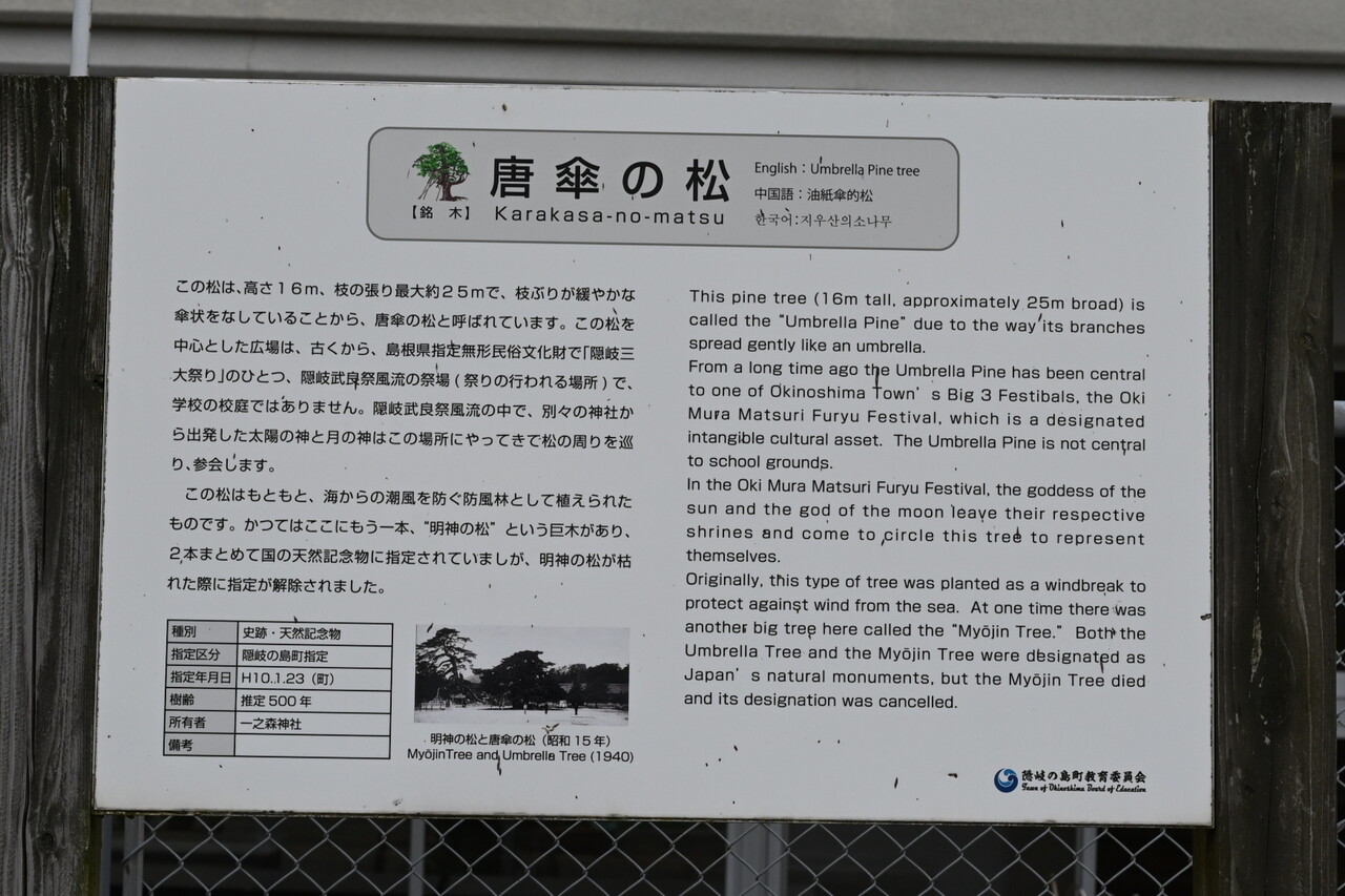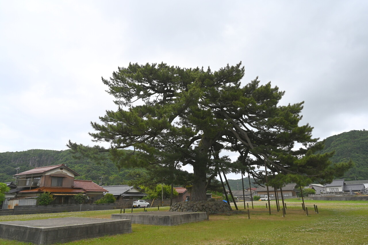 「踊る水木先生」のブロンズ像の近くにもう1つ、見どころがある。「唐傘の松」だ。遠目から見ても見事。この地区のシンボル的存在と聞く。