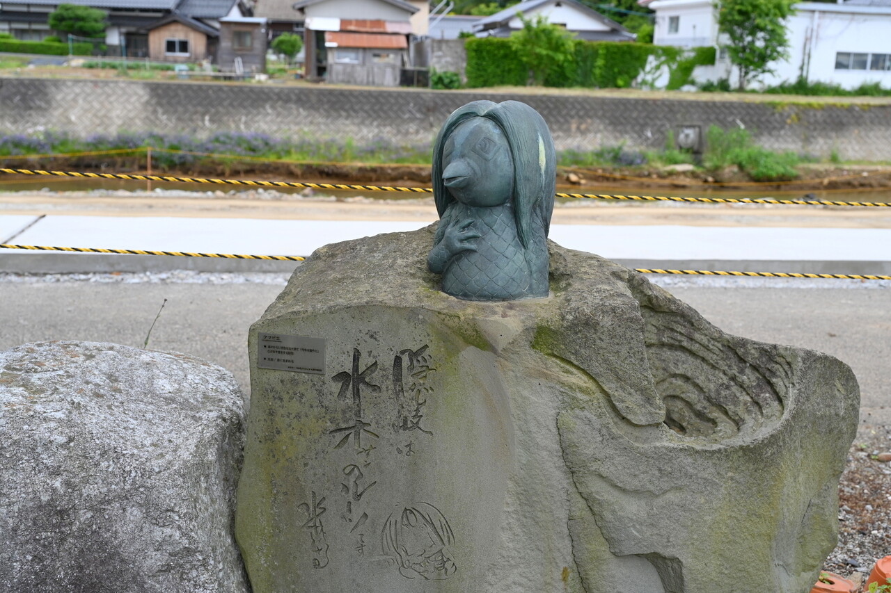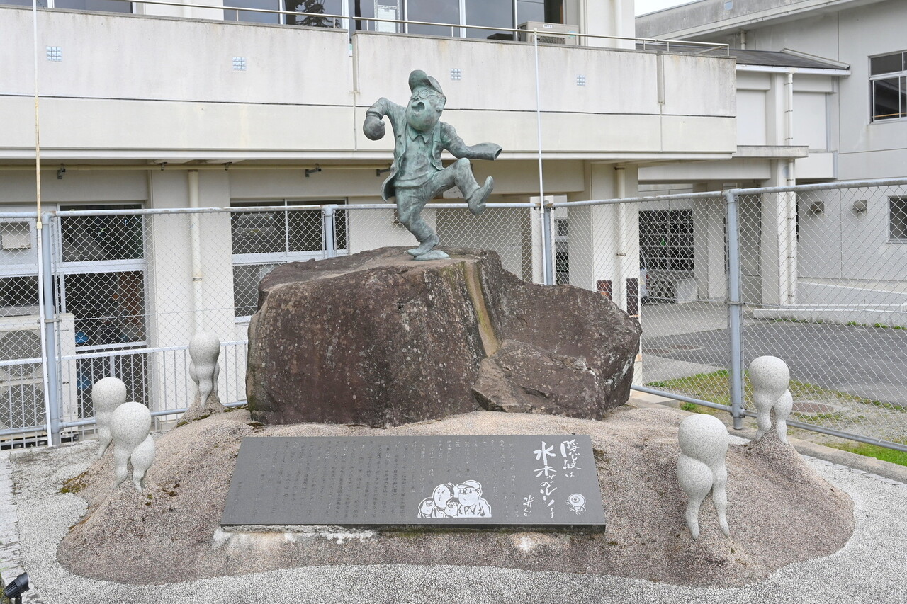 また、近くの小中学校の前には「踊る水木先生」の像もある。佐々木定綱が隠岐地頭に任命された建久4年(1204)に始まったと伝わる、隠岐三大祭りの1つ「武良祭り風流」にちなみ、水木氏が踊っている。